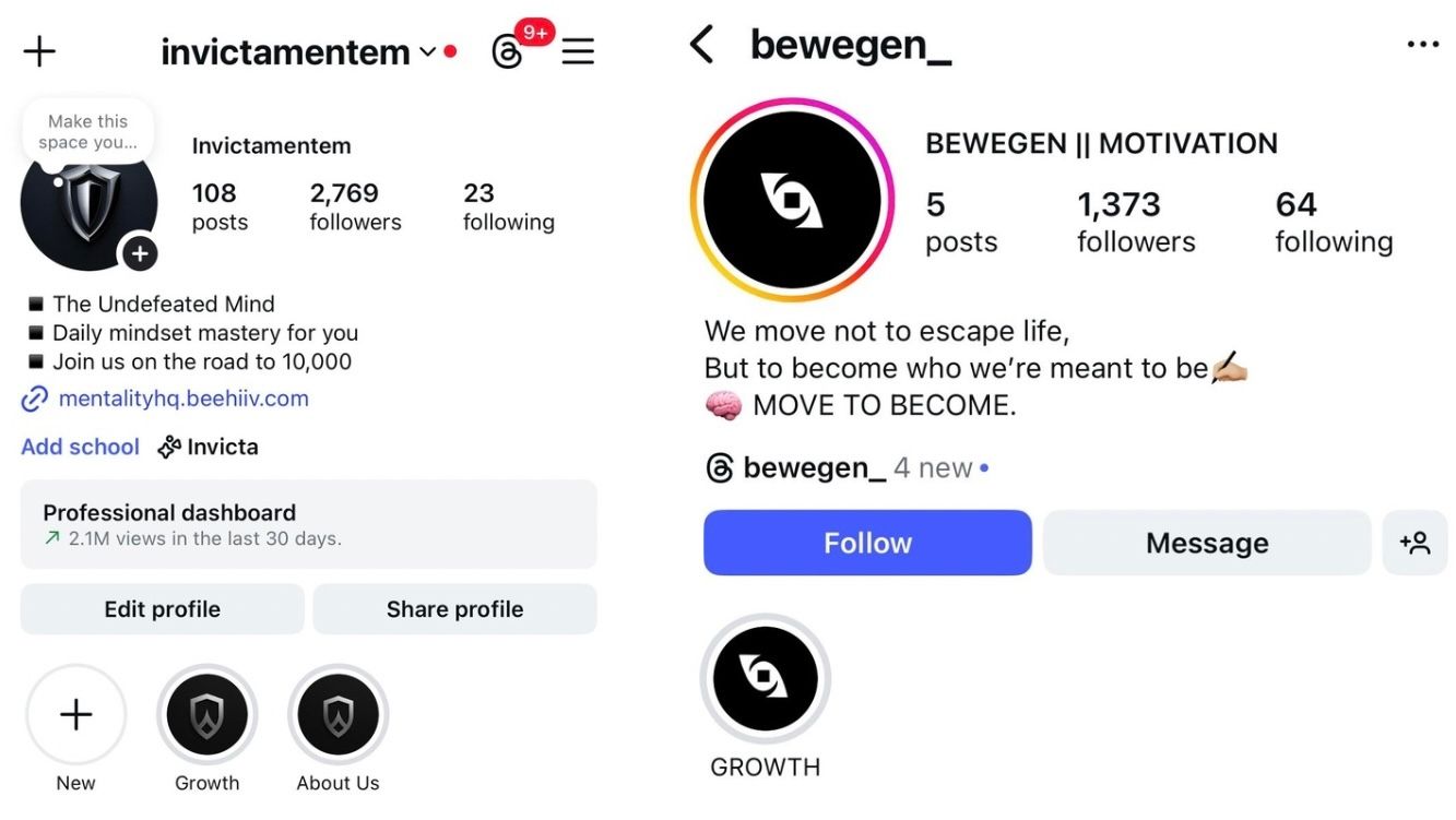 In the past month alone, I scaled brand new pages like Invictamentem and Bewegen, from 0 followers to well over 1,000+ followers in under thirty days.